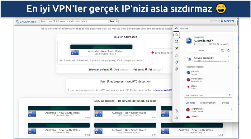 Bir IP denetleyicisi web sitesini ziyaret etmeniz yeterlidir. Bu denetleyiciler aynı zamanda sızıntı testi araçları olarak da bilinir. Bu araçlar, ziyaret ettiğiniz web sitelerine hangi IP adresinin gösterildiğini gösterir. IP’nizin seçtiğiniz yöntemdeki IP ile eşleştiğinden emin olun.