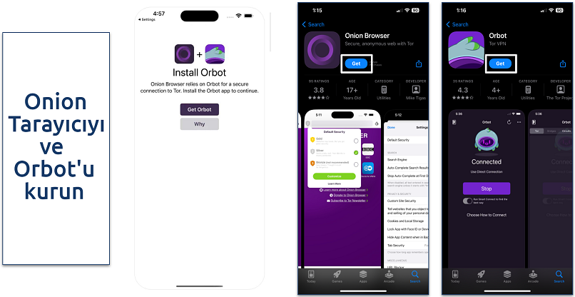 1. Adım: Onion Tarayıcıyı ve Orbot uygulamasını Apple App Store'dan indirin.