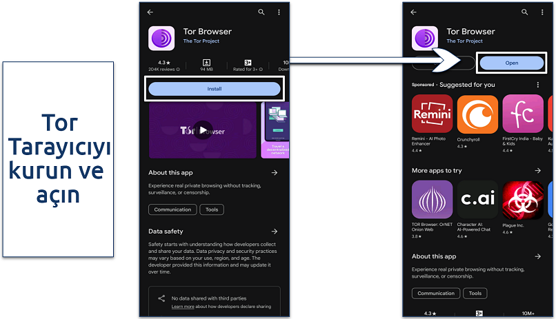 1. Adım: Google Play Store'a gidin ve resmi Tor tarayıcısını indirin.