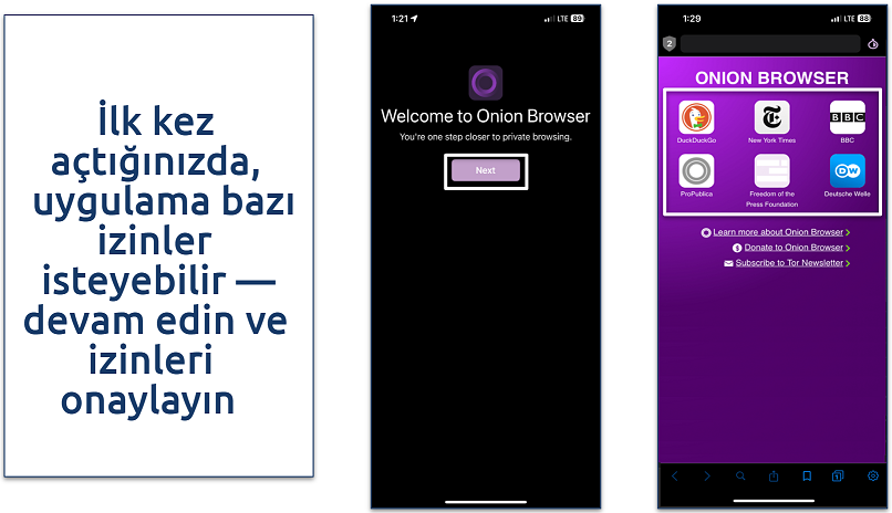 Evet, Tor Onion Browser aracılığıyla iPhone’da ücretsiz olarak kullanılabilir (Tor Projesi tarafından tavsiye edilen). Bu tarayıcısı, iOS cihazlarında Tor ağına bağlanmanıza olanak tanır ve Tor’un gizlilik özelliklerini ücretsiz sağlar. iPhone’unuzda Tor’u kolayca ayarlayabilirsiniz, ancak çalışması için Orbot'u kullanmanız gerekmektedir.