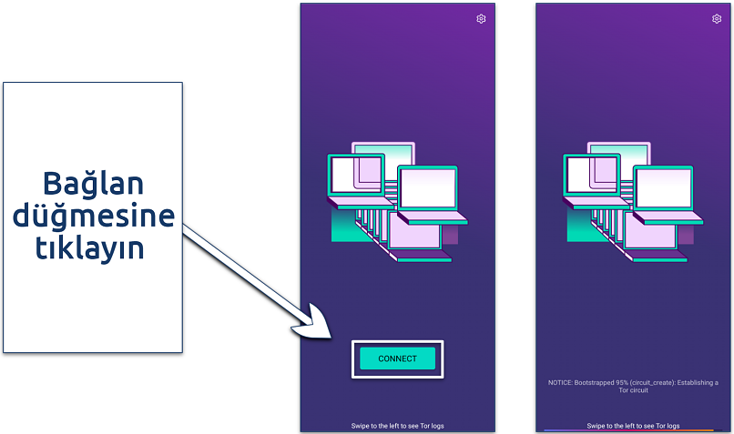 3. Adım: Tor Tarayıcıyı açın ve Bağlan ("Connect") butonuna tıklayın.