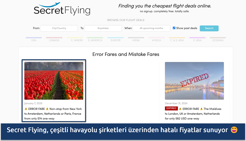 Sosyal medya, forumlar ve Secret Flying gibi siteler üzerinden hatalı fiyatlar bulabilirsin. Bunlar, inanılmaz düşük fiyatlarla sonuçlanan hatalardır. Birkaçını yer imlerine ekleyerek hiçbir fırsatı kaçırmamana yardımcı olacaktır.